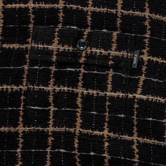 経糸にレーヨン/ポリエステルの混紡糸、緯糸にモールスキンを使用したオリジナル生地のオンブレチェック柄レギュラーカラーシャツ。緯糸にモールスキンを採用したことでハリ・コシに優れつつ、黒糸箇所を掻き上げることで柔らかな風合いに仕上げてある。両胸にパッチポケット、ポケット左縁にピスネームを挟み込み。裾はフラットなボックス型、レギュラーフィットシルエット。製品にてワンウォッシュ済み。1色5サイズ展開。